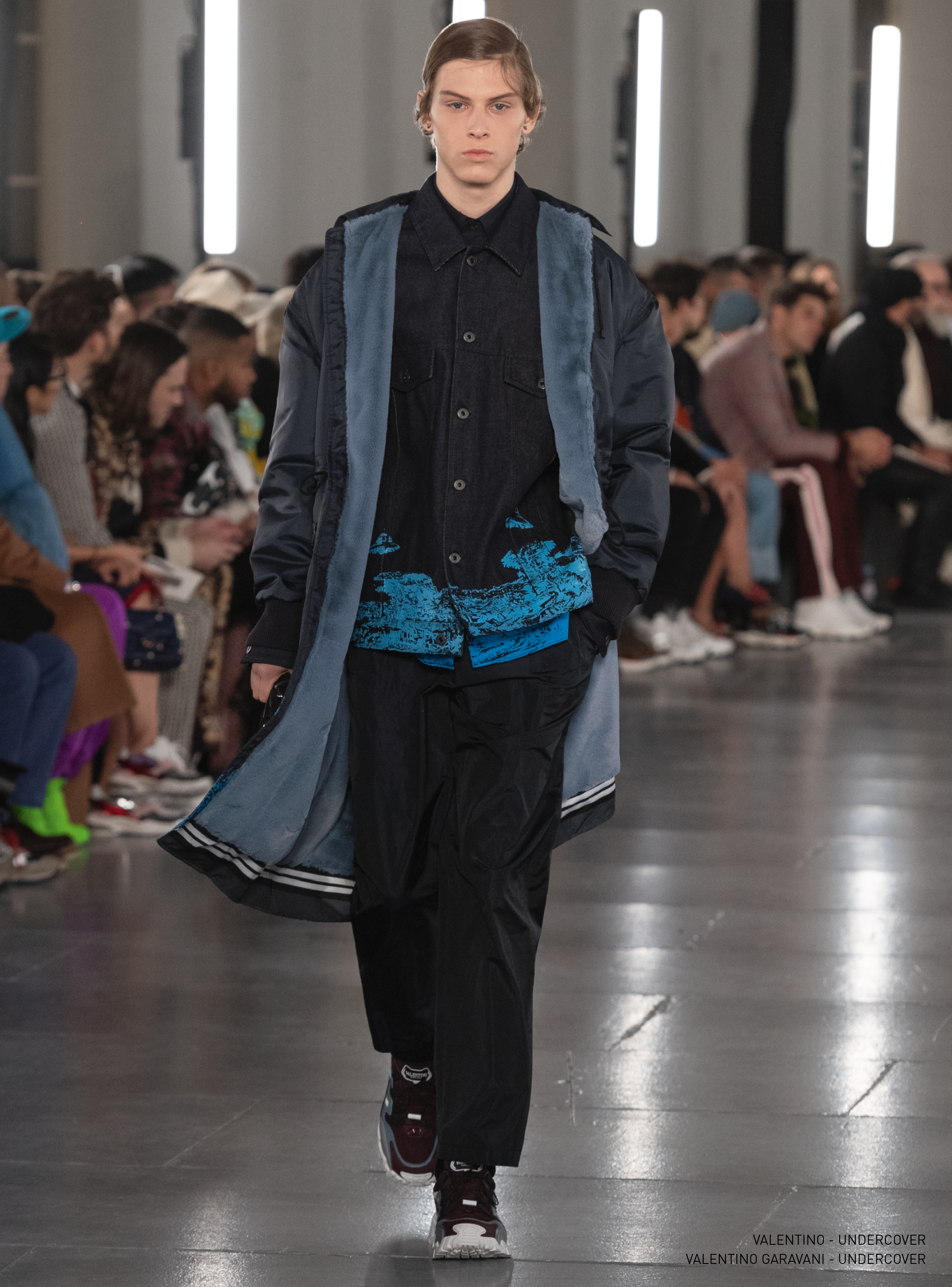 For Valentino's A/W 2019 men's collection, Pierpaolo Piccioli explored fluidity. Liquid as a free approach to tailoring, without formalisms