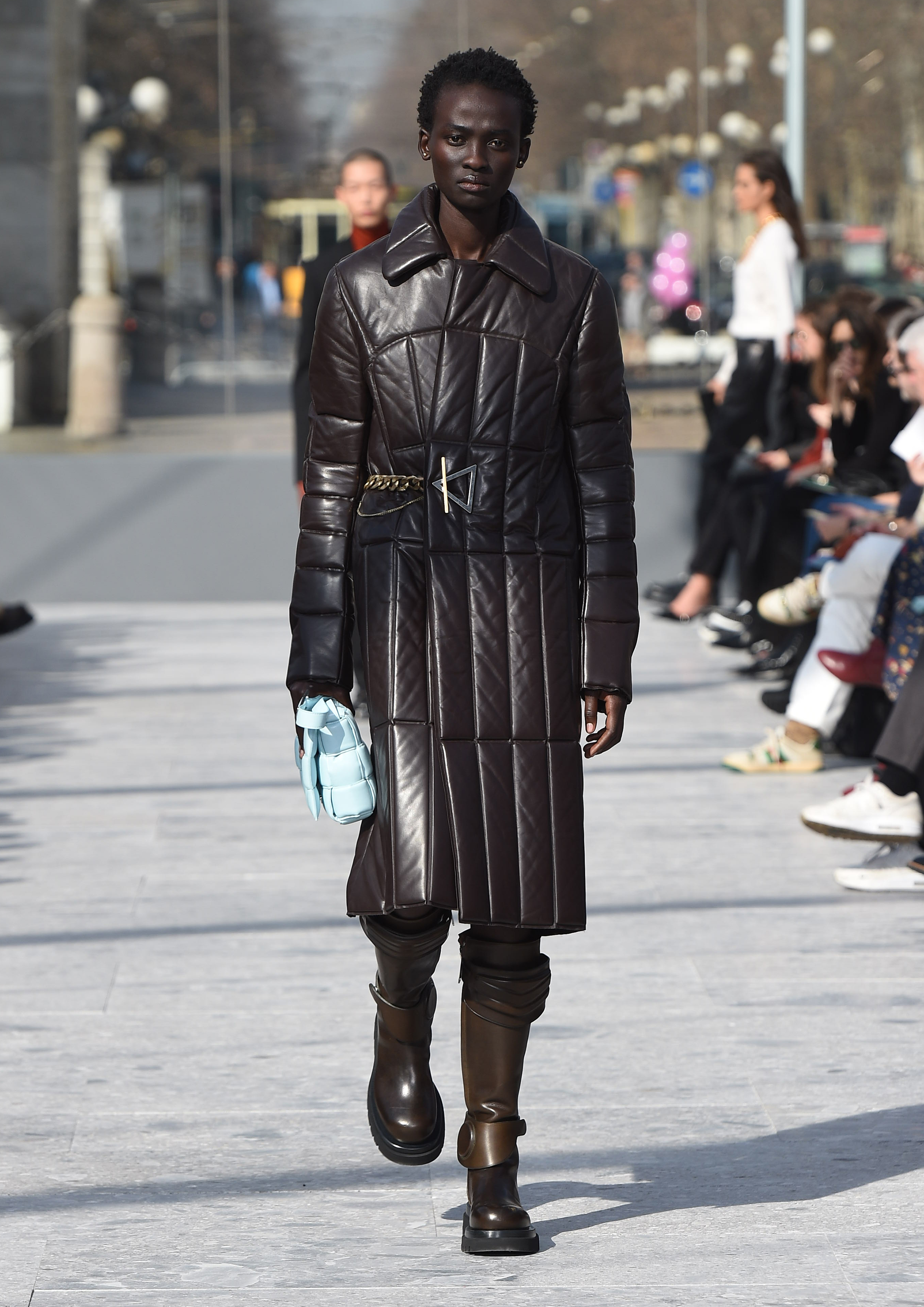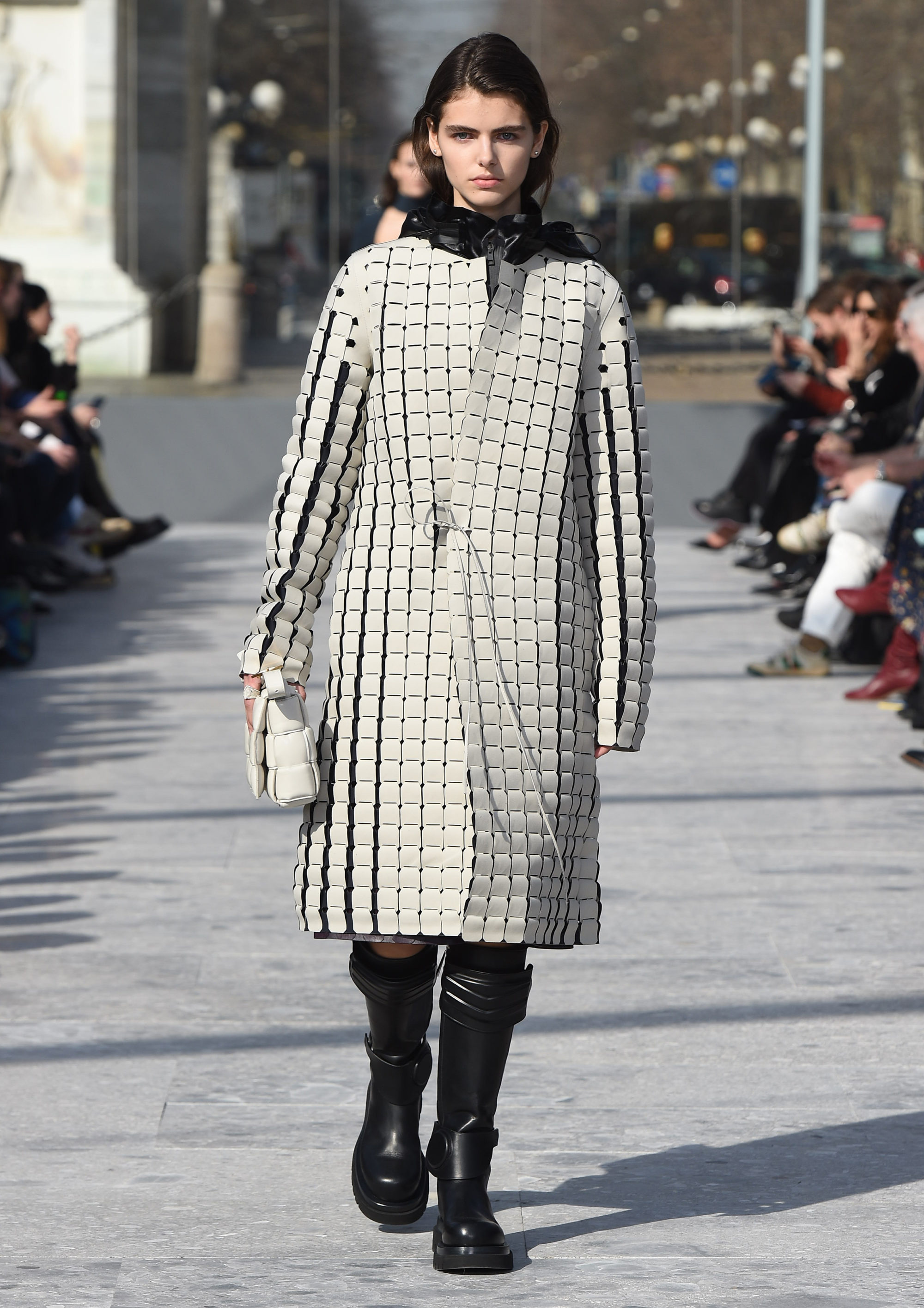 Presenting a new vocabulary for Bottega Veneta, leather and the house’s Intrecciato weave is reinterpreted and evolved. Polished dresses and layered knitwear pair with armour-like outerwear, sharp tailoring and confident accessories.