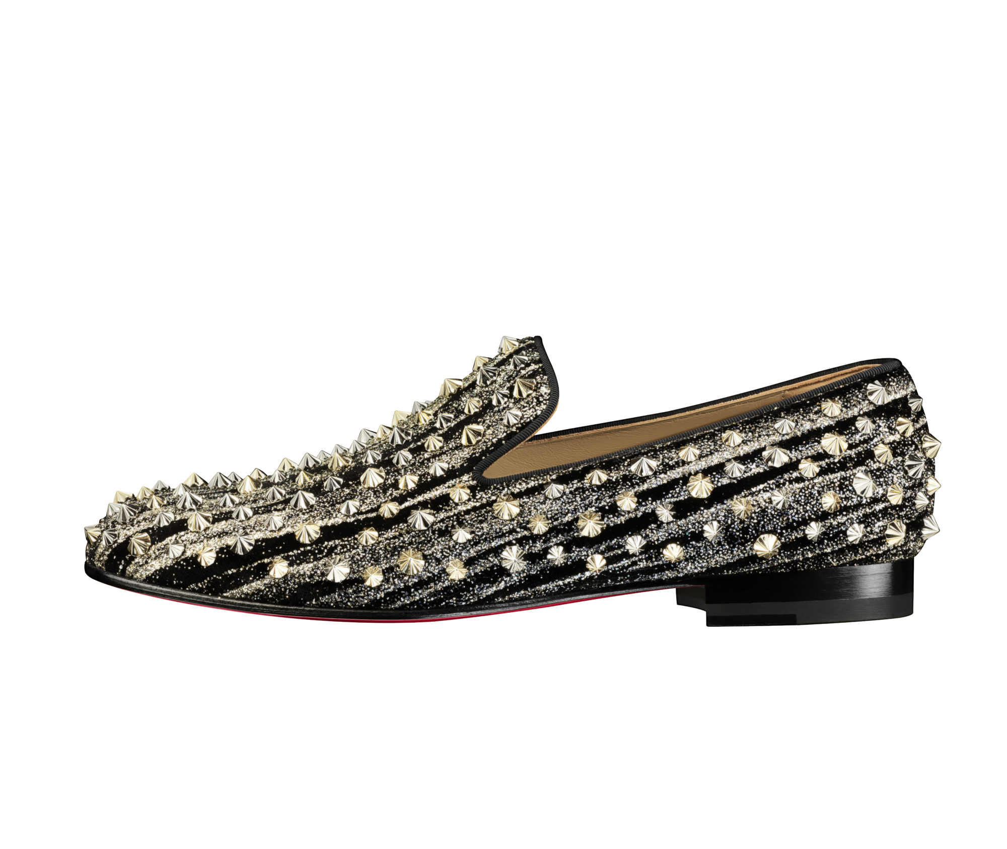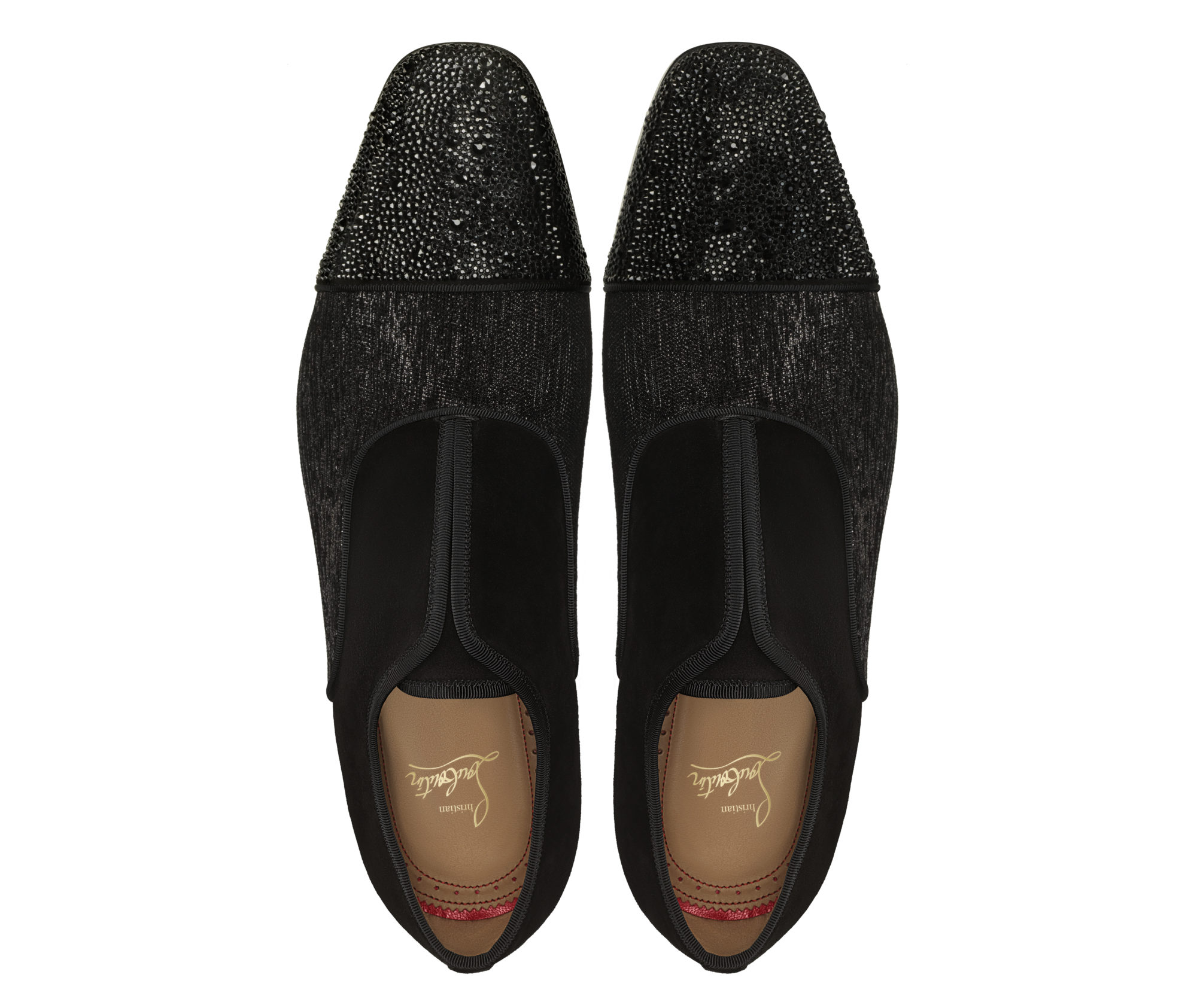 This season, men are gifted with fancy loafers. Luxurious statement, the extravagant Laperouse style stands out with unquestionable chic. On top of pitch-black velvet, the initials C.L are embroidered in a brightly lit arrangement of golden strass and coloured gems. With the Ascot boy, men can now also walk the parties like they were awarded eye-popping decorations. Get prepared for some spectacular entrances!