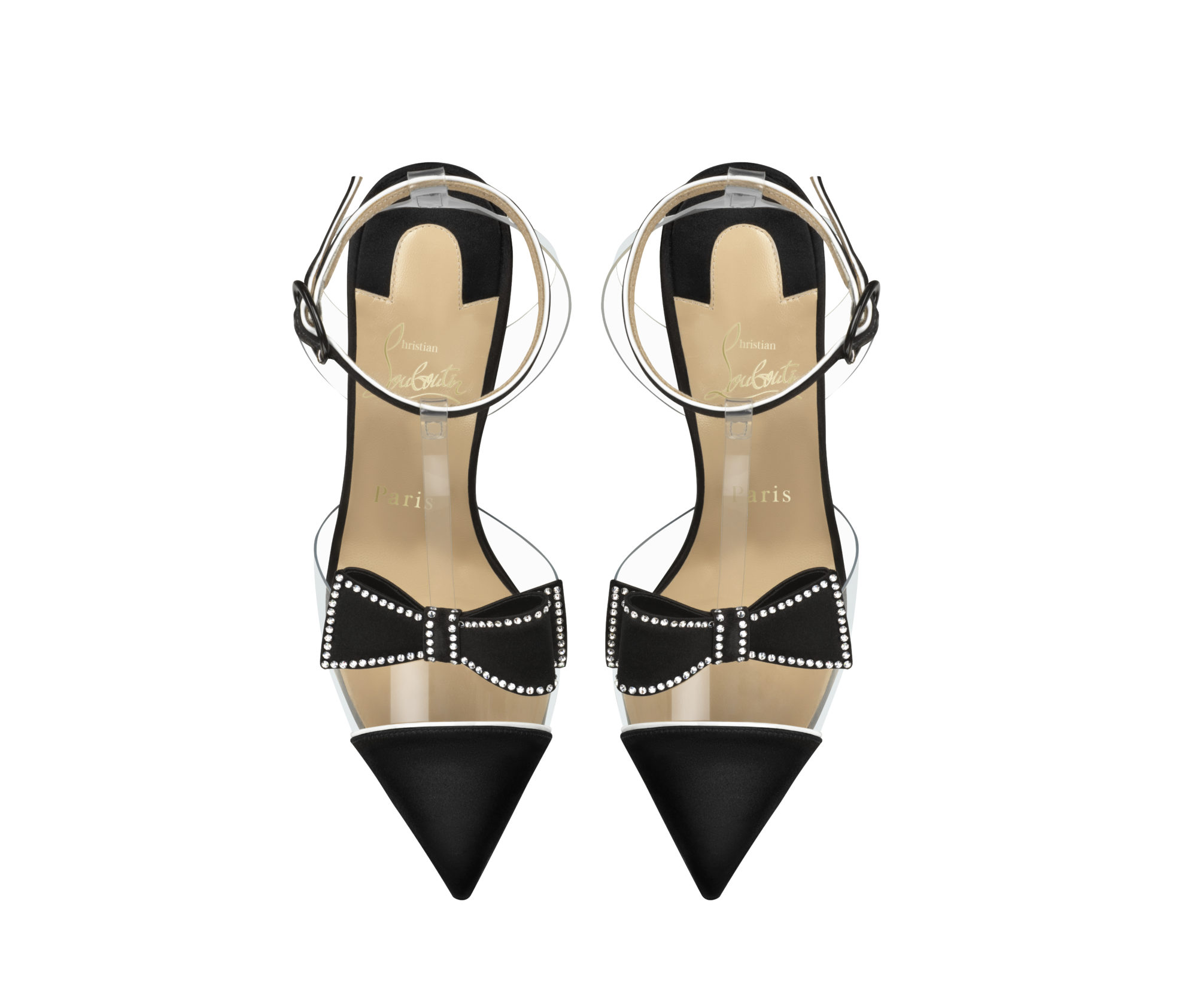 Christian Louboutin’s Black Tie collection is an open invitation to celebrate! A collection that diverts the codes of formal parties: Iconic signature styles are turned around, reinvented, forever compelling. The most daring embellishments are on display with strass, embroideries and fine lace. Women’s  shoes are adorned with unusual features. Demonstrating his singular humour, Christian reveals new styles with bows and ties diverted from men’s wardrobe. Covered in luminous strass and gleaming Louboutin signature, the Marie fane Bucket is the ultimate party accessory.
