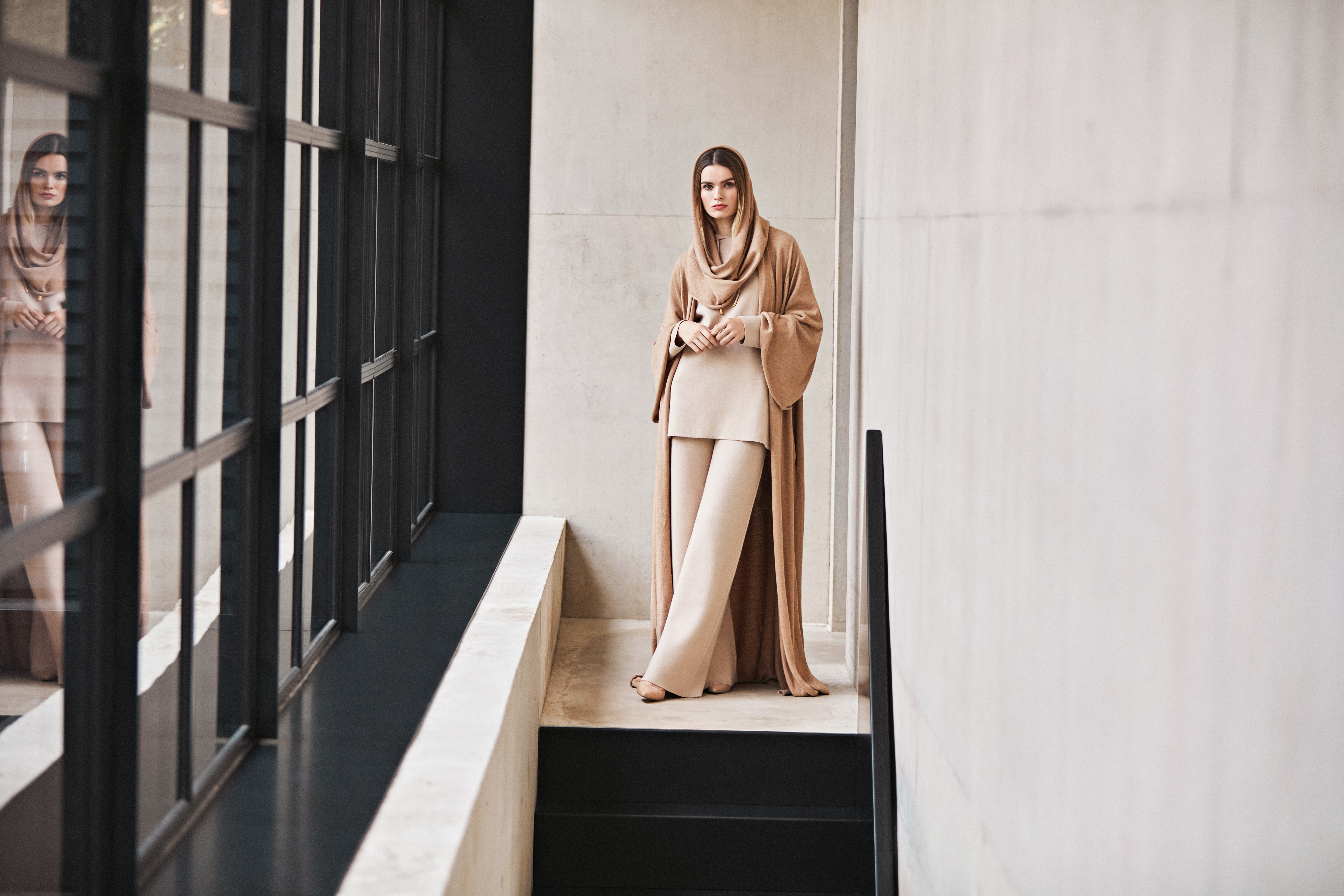 The palette this season can be found in gradient detailing, making an appearance on blouses, dresses and abayas in a dégradé mix of shades, ranging from plum to dusty rose, emerald to forest green, blacks and greys. The collection’s tailored aesthetic is further pronounced by a powerful autumnal palette of rosewood, rust, mustard, light and dark khaki, wheat, camel, petroleum, navy and a blank canvas of winter white.