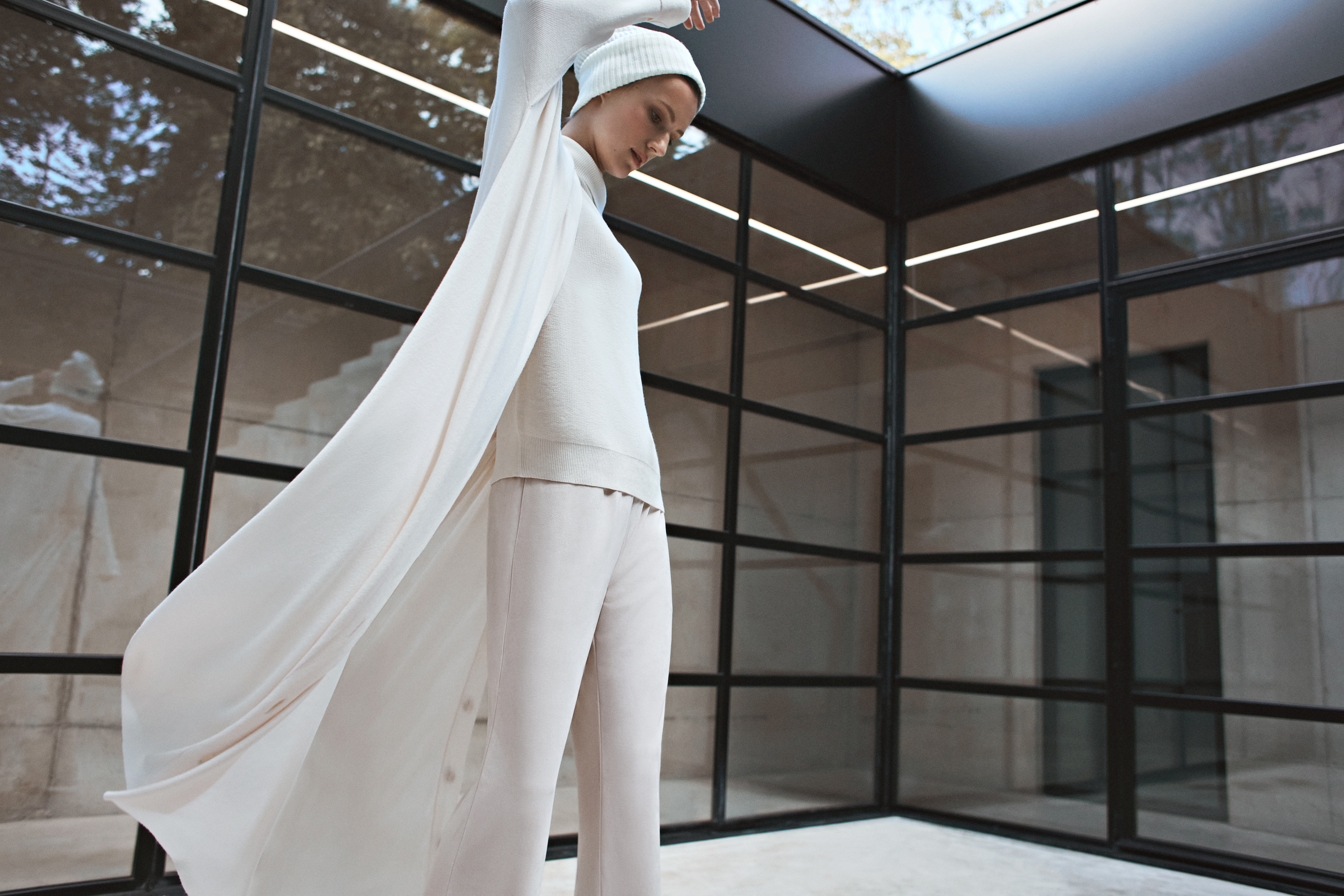 The collection opens with gorgeous embroidery details, shimmers and chain accents found on the shoulders and necklines of maxi dresses. Flowing skirts crossed with minimalist grey and kaftans fashioned with iridescent surfaces, including foil effects, give this range a dreamlike sheen. Flat sequins, bell sleeves and pleats also make a statement this season and enhance the dress code, via unique interpretations on minimal shapes.