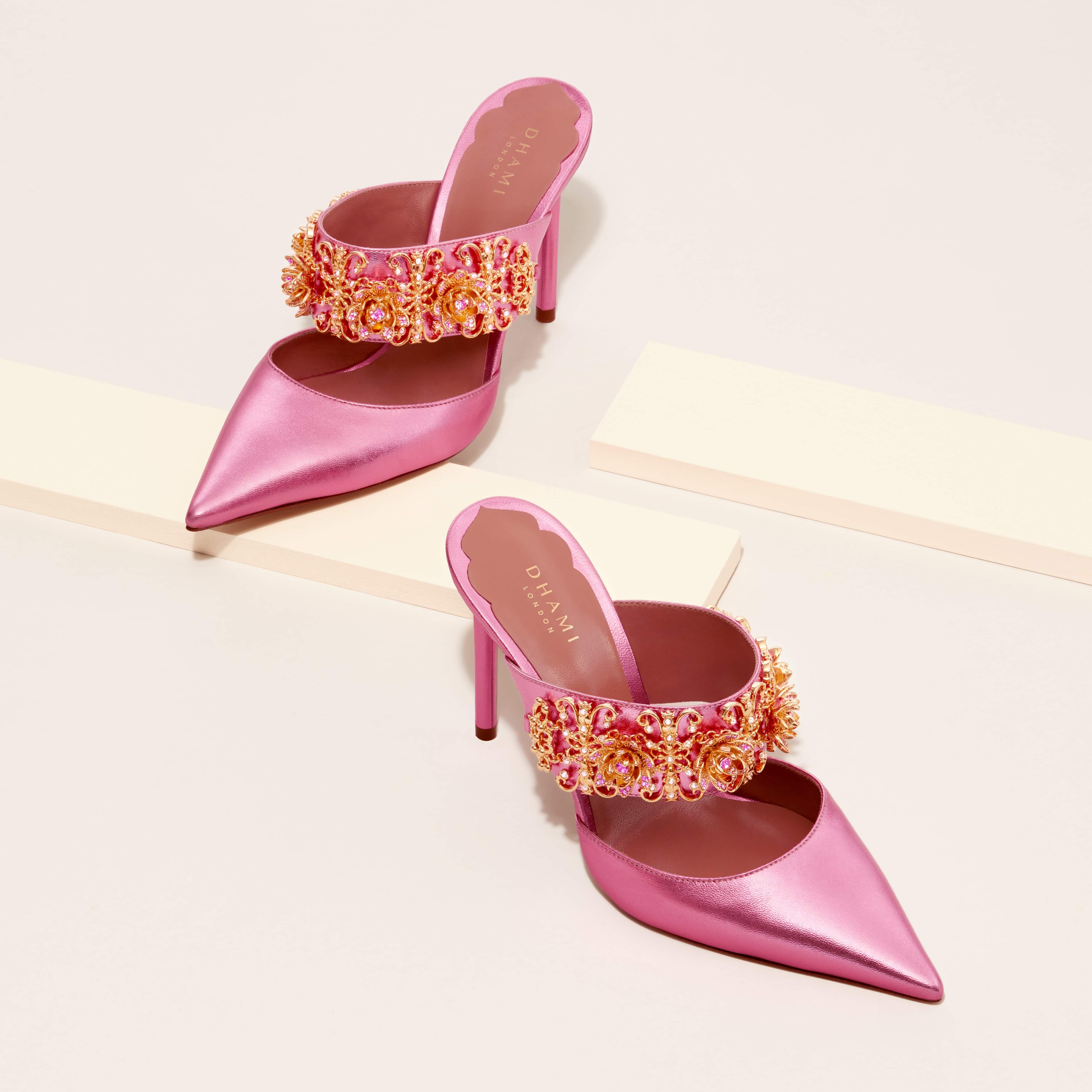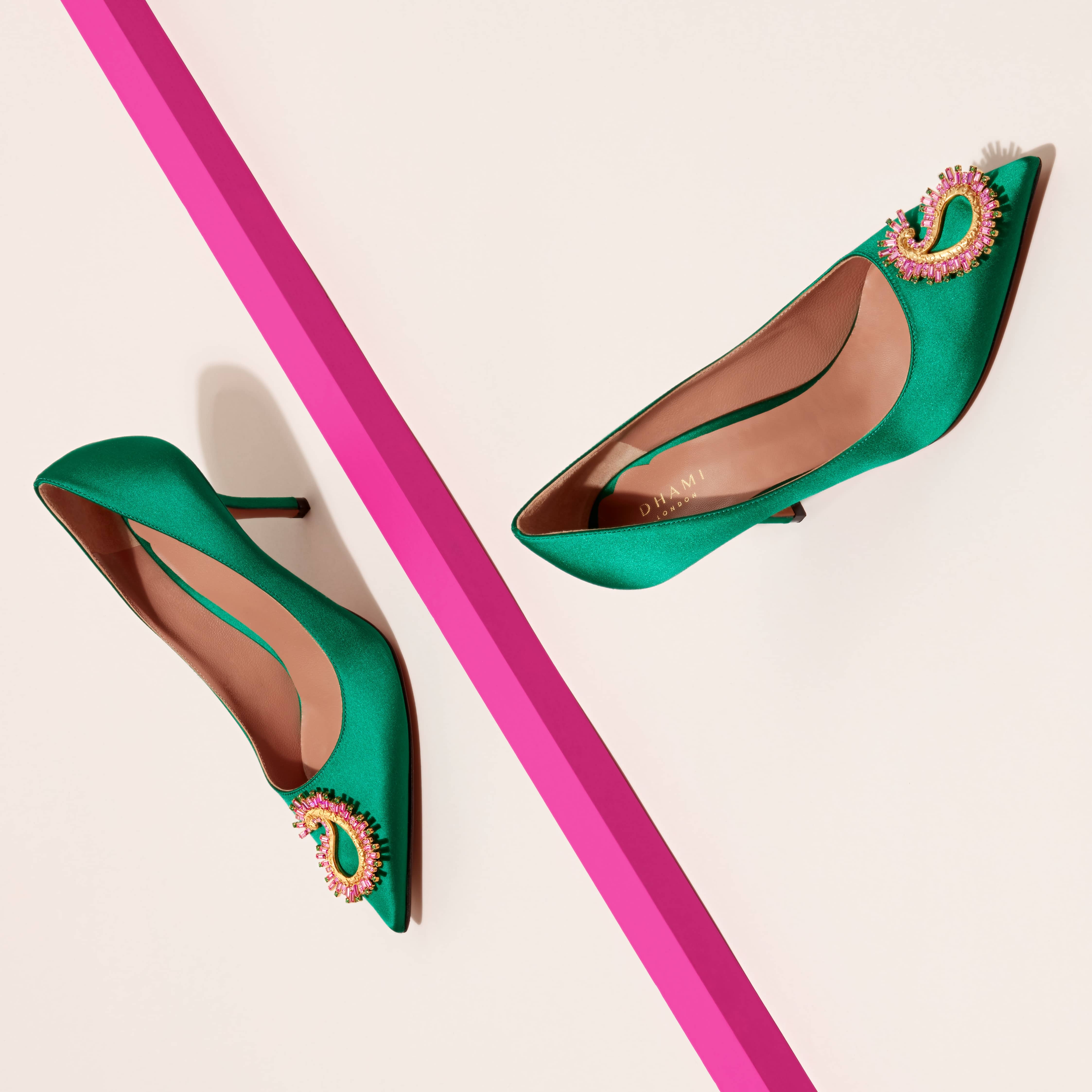 From an early age I was obsessed with the wonder of women’s shoes, their elegant forms, sensory materials, and vivid colours. I always remember my mother popping on her heels- empowered, vivacious, beautiful. having contacted polio as a baby I thought I would never experience that feeling. I was wrong. my joy came from creating my own designs a personal style that fuses eastern vibrancy with western elegance and creating beautiful footwear for others that makes us all feel our best and I am a self-taught designer.