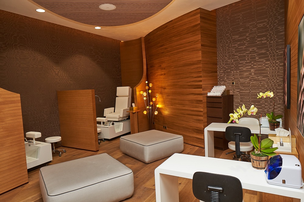 With no expense spared at the brand’s largest venue to date, the generously spaced 1,800 sq ft. beauty and grooming zone mixes uber-modern décor with sleek wooden finishes giving an updated twist on its trademark opulent interior. An architects’ dream, the super chic Mani/Pedi stations, complete with soft white leather high-back seats are cocooned within a private cabin, more in-line with a first-class flying experience than a traditional salon setting.