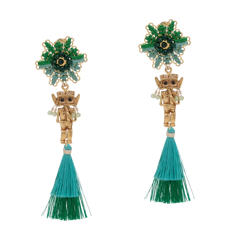 L-R: Katerina Makriyanni Rose Earrings, Mercedes Salazar White River’s Flautist Earrings, Musula Dragon Fruit Earrings.