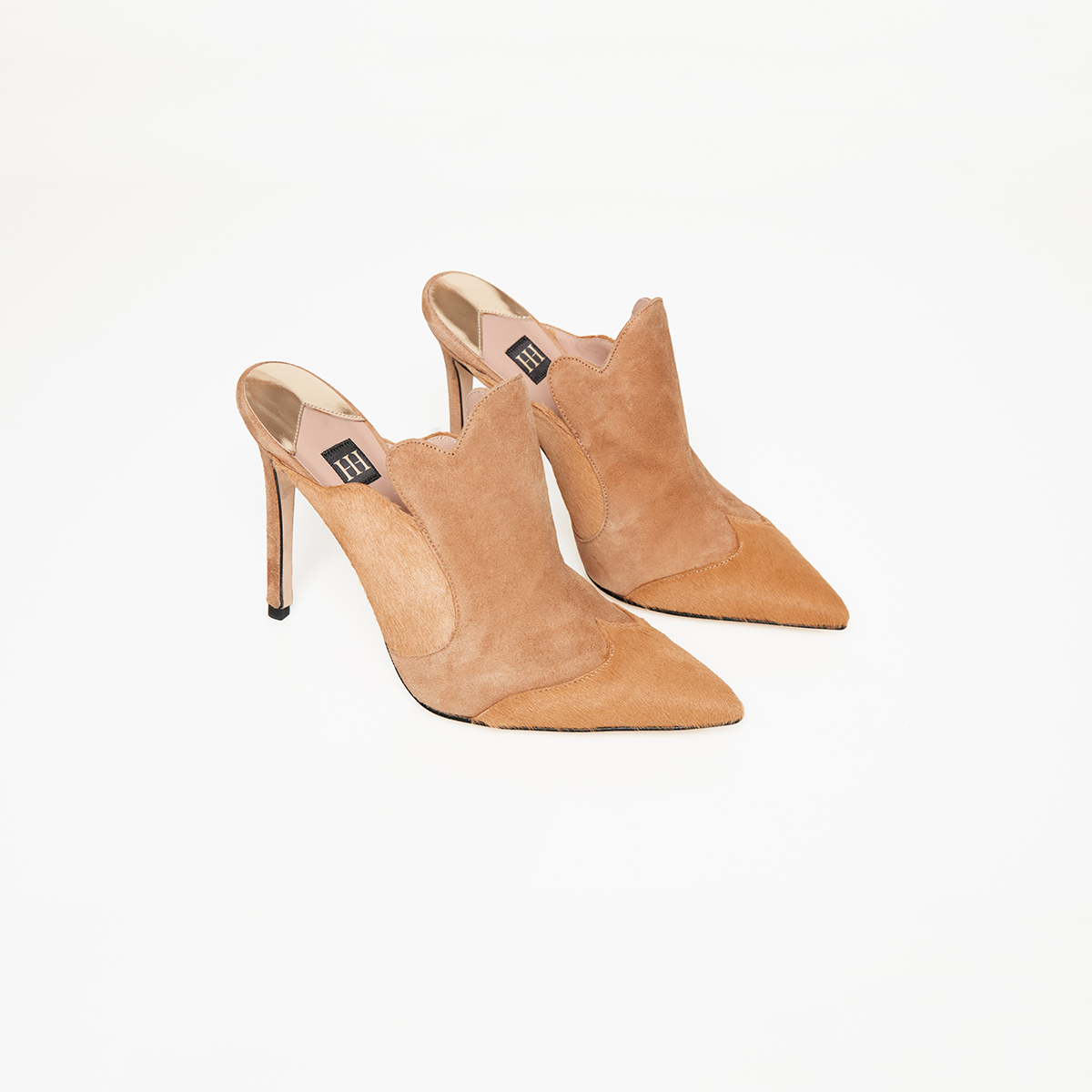 Hissa Haddad grew up in house full of brothers, her love for design comes from her father and his sketches, but also from her mother who was always coming up with creative ideas to add her personal touch to her clothes and accessories. Inspired by historical art, architecture and the love of fine jewellery, each pair is draped with the finest materials of satin and leather, and hand encrusted with gems.