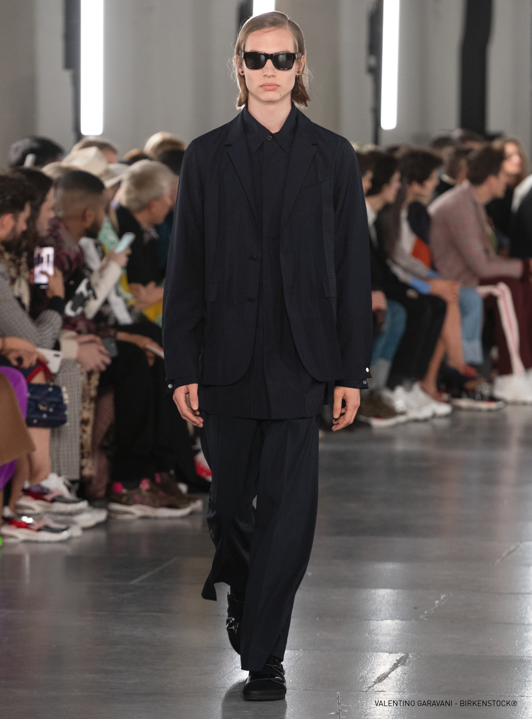 For Valentino‘s A/W 2019 men’s collection, Pierpaolo Piccioli explored fluidity. Liquid as a free approach to tailoring.