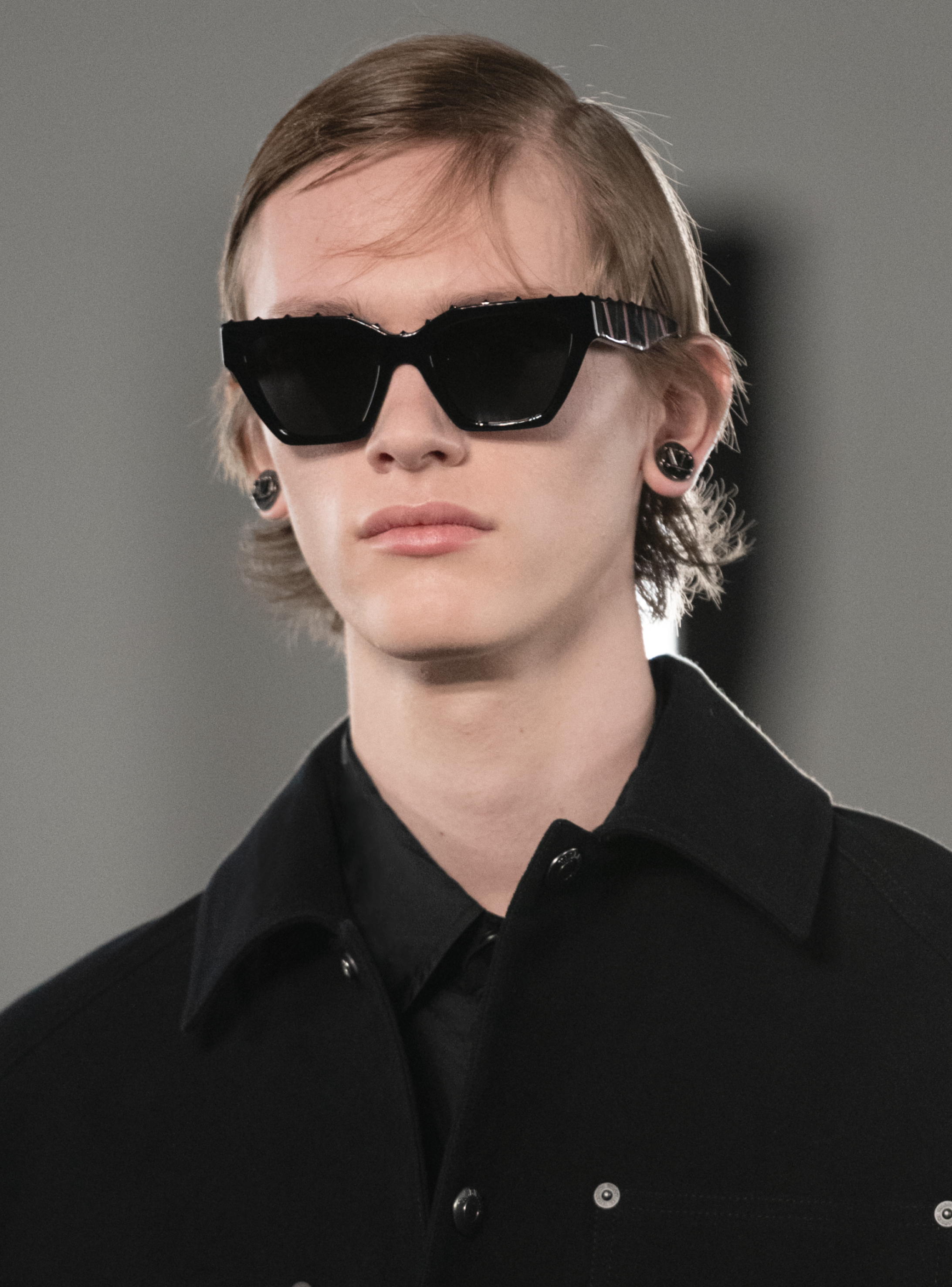 Individual pieces were broken down, eased and re-calibrated in monochrome. There was graceful suiting; sleeveless wool jackets worn over coats. Lightly padded raincoats. A longer line on shirting worn underneath double breasted jackets. Rich wool coats with long, scarf collars. Standout were the space-age graphics designed in collaboration with Jun Takahashi of Undercover. His collages, featuring space ships, portraits of Ludwig van Beethoven in the film A Clockwork Orange, flying saucers and lunar landscapes, were used as intarsias, embroideries, jacquards and prints. The season’s standout coat will most likely be a round-shouldered mohair style, covered with Takahashi’s floating, sky-blue spaceships.