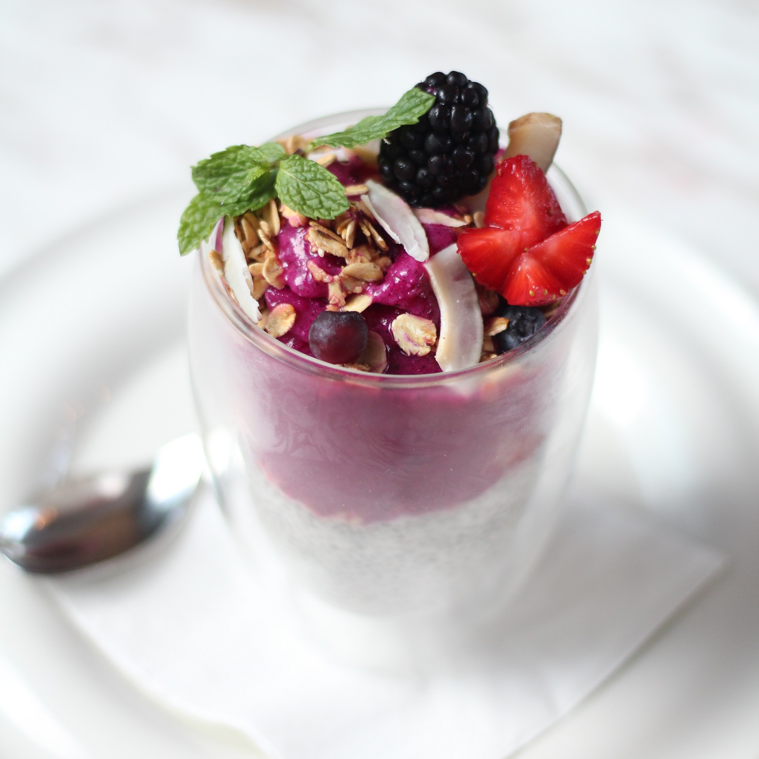 For mains, the Halloumi & Avocado Sandwich and Power Burger (halloumi cheese, sweet potato, quinoa, black bean and oat flakes) will definitely satisfy your appetite, without weighing you down. End your meal on a sweet note with a refreshing bowl of fresh fruit, a sugar-free Agave And Fresh Berry Panna Cotta or a coconut-milk based Organic Chia Pudding, served with mixed berry compote.