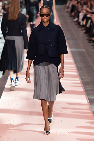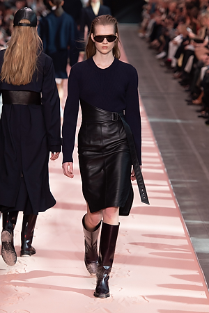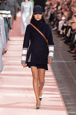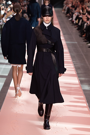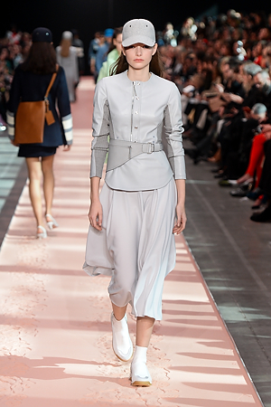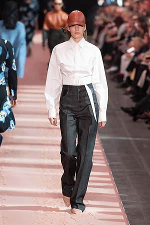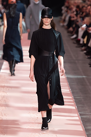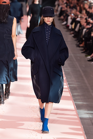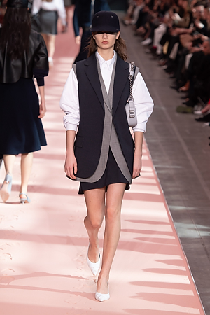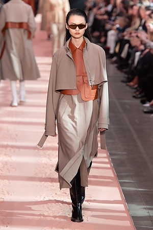 A sense of energy emanates from outwear pieces, from coats to bomber jackets, that defines new volumes through the shoulders, emphasizing the play on curves and contours. Building on the concept of classicism of the future, a part of the brand’s DNA, the collection proposes oversize double-face coats and those with placement stripes, blazers and skirts combine various patterns and materials, the cashmere shearling jacket with back seams and the transformable trench coat, which can be divided into two pieces, mixed and matched with the leather vest, a key garment which can be paired with RTW pieces and knitwear, interplaying and enriching the wardrobe combinations. The sportswear-inspired attitude of lightly padded nylon dresses and matelassé shirts with graphic effects styled with baseball caps complete the look.