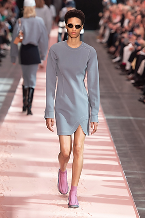 For its Fall/Winter 2019-20 collection, Sportmax introduces a vision of classicism projected into the future, working on the silhouette. The collection develops a new concept of dynamic feminine and futuristic tailoring, that is also interpreted in the new combination of suits created by mixing two joinable pieces, wearable in multiple ways to become the classicism of the future. Sunglasses, an important new category addition thanks to the exclusive worldwide licensing agreement with Marcolin Group, are characterized by strong shapes, contrasting materials and asymmetrical lines. A new sneaker collection, marked by overlapping layers on the upper in suede, rubber-effect leather and 3-D concentric circles on the soles, delineates a new dynamic shape.