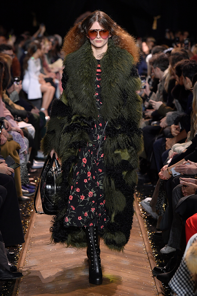Models paraded down the runway showcasing looks, reminiscent of disco dreams. Floral-printed dresses mixed with robust military wear and fur-style jackets. There were sequins galore in the form of slinky and bias-cut dresses, while sleek numbers with billowing sleeves, in shimmery gold and silver tones, was a fabulous take on the tailored look.