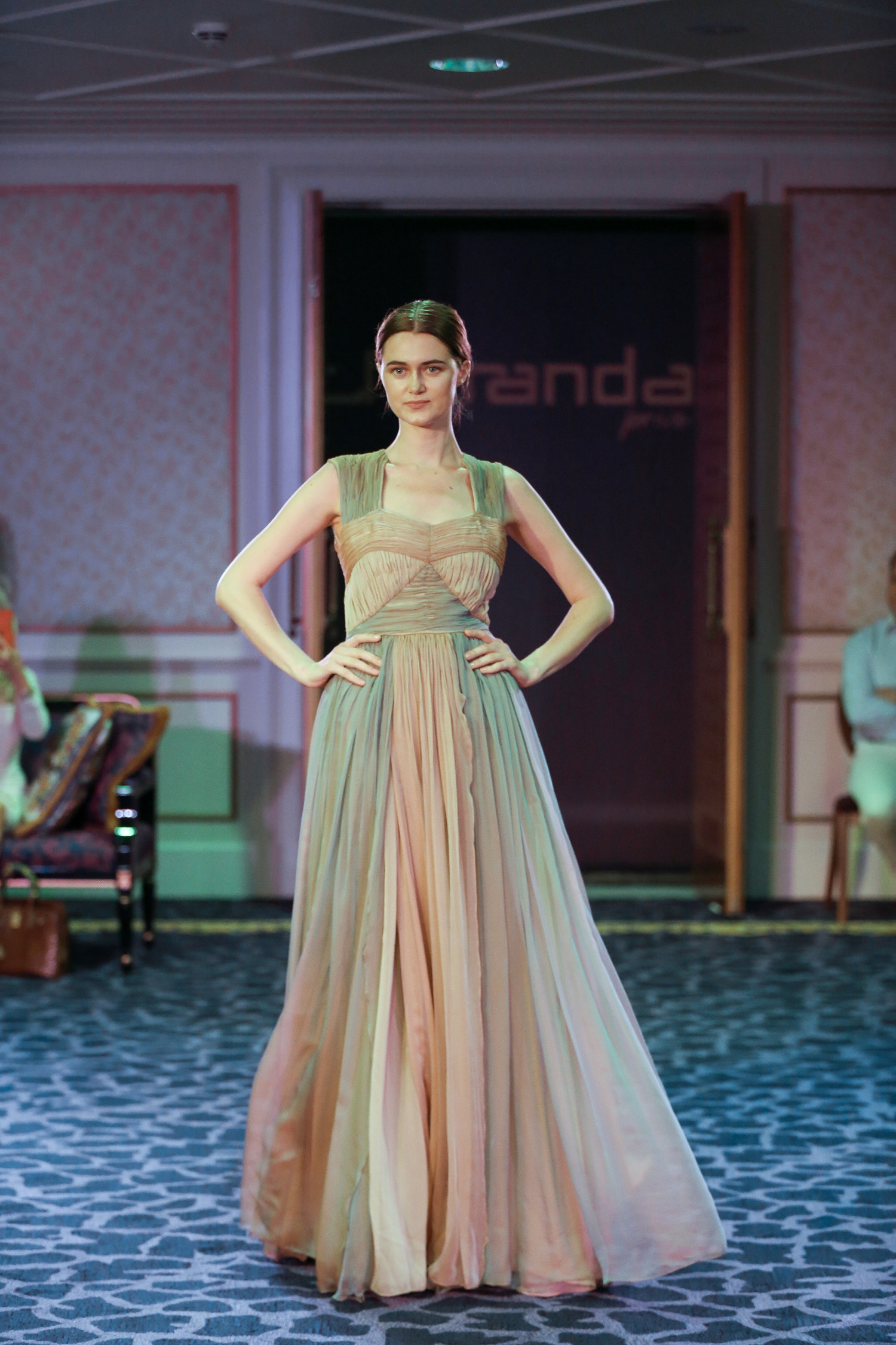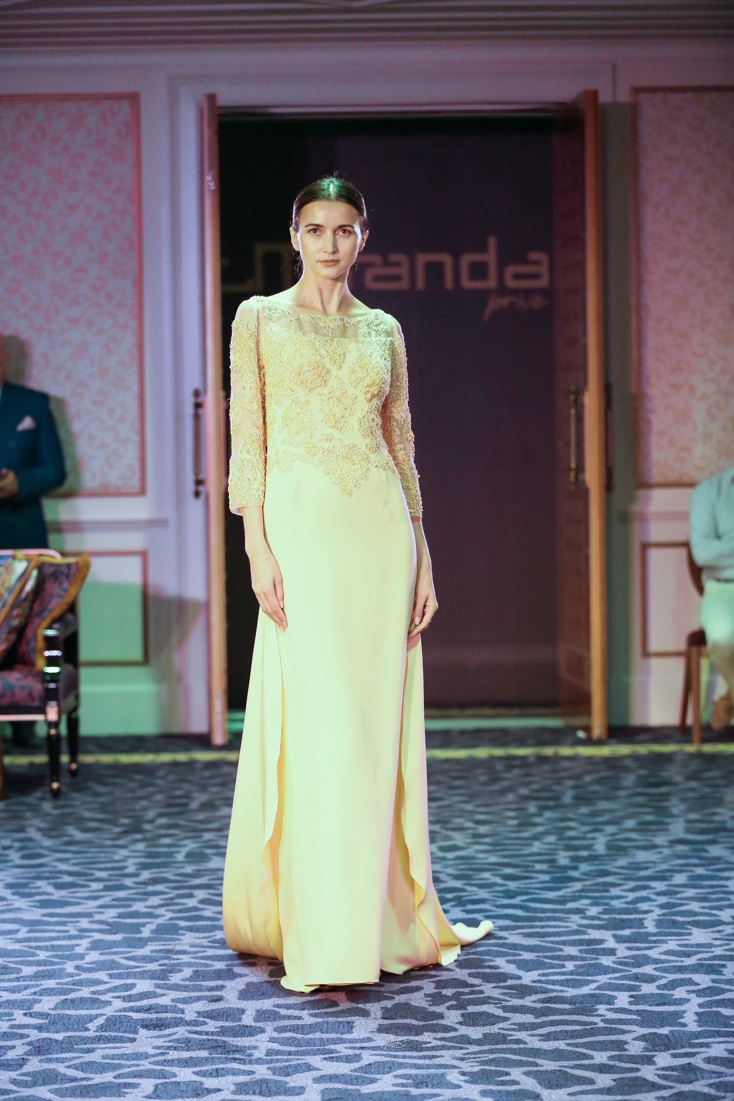 His collection light up the lounge in true style, in what can be described as timeless elegance and classic chic: the collection was truly feminine at heart, yet had a fresh and fun appeal to it, thanks to its choice of colors. Warm reds, emerald green and bright yellows, were among the stand out colors, along with powder pink and classic blacks. Lace sleeves, pleats, intricate embroidery and statement trains ensured all eyes were on the models as they paraded in-front of the clients.