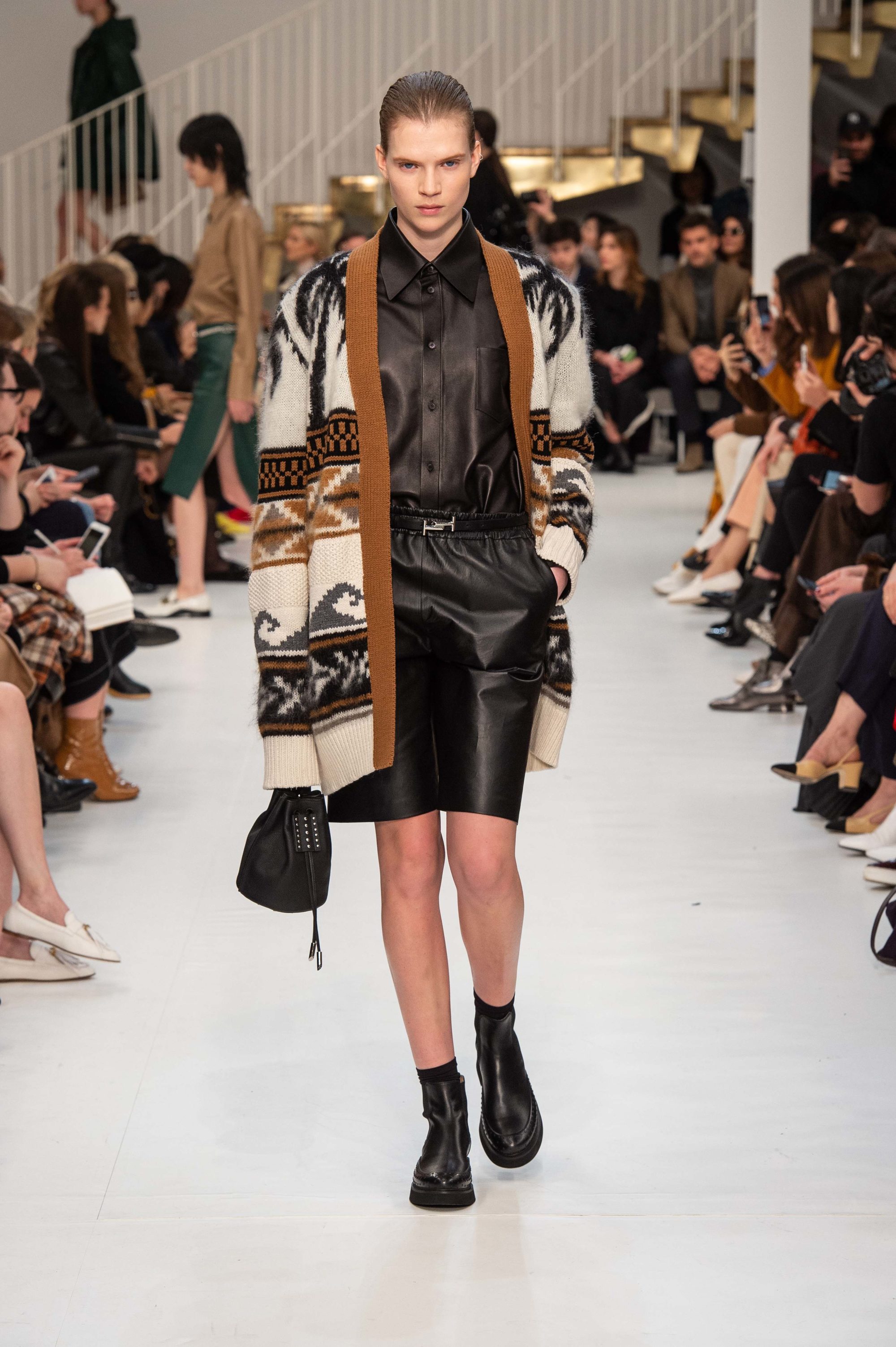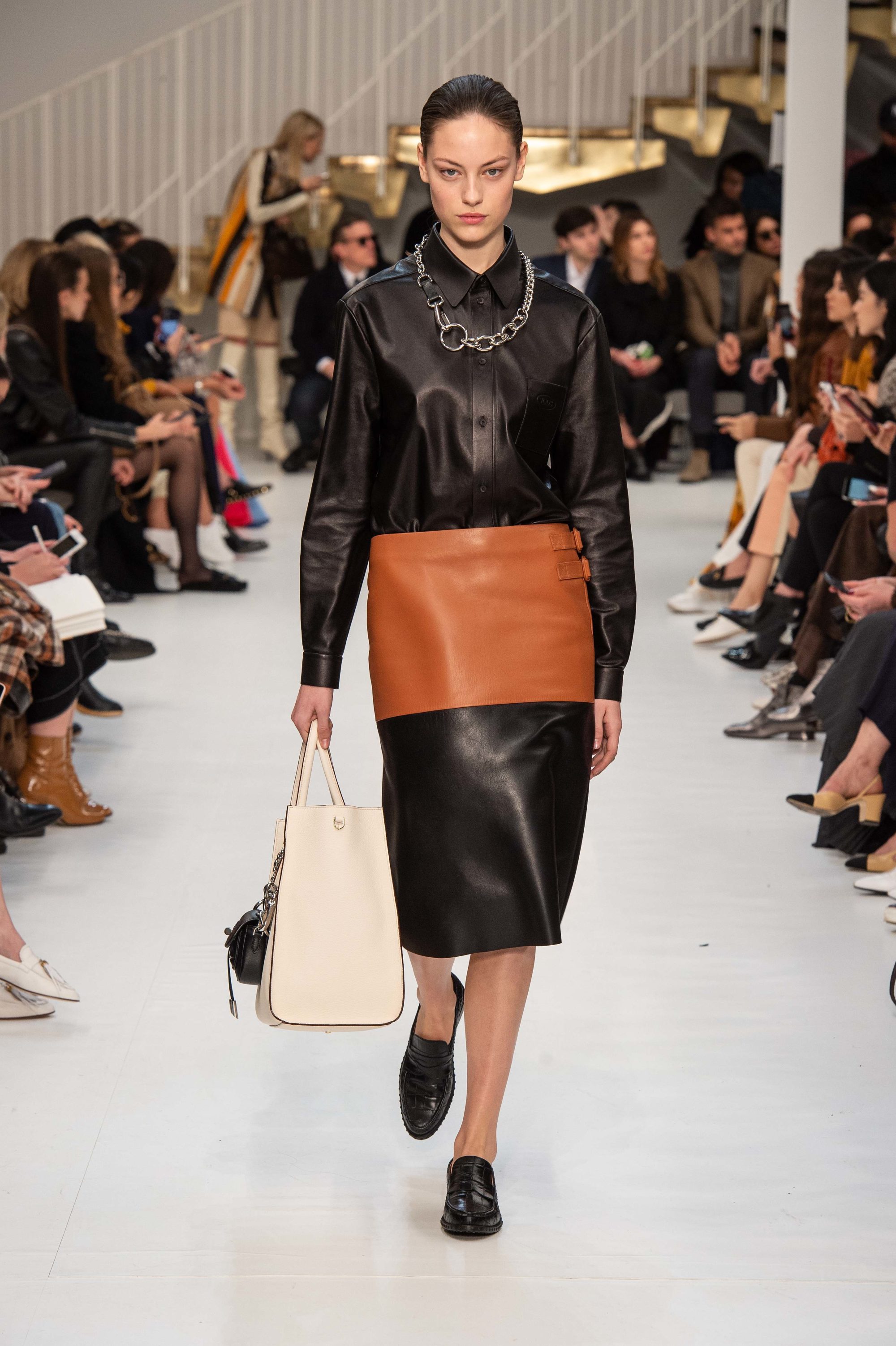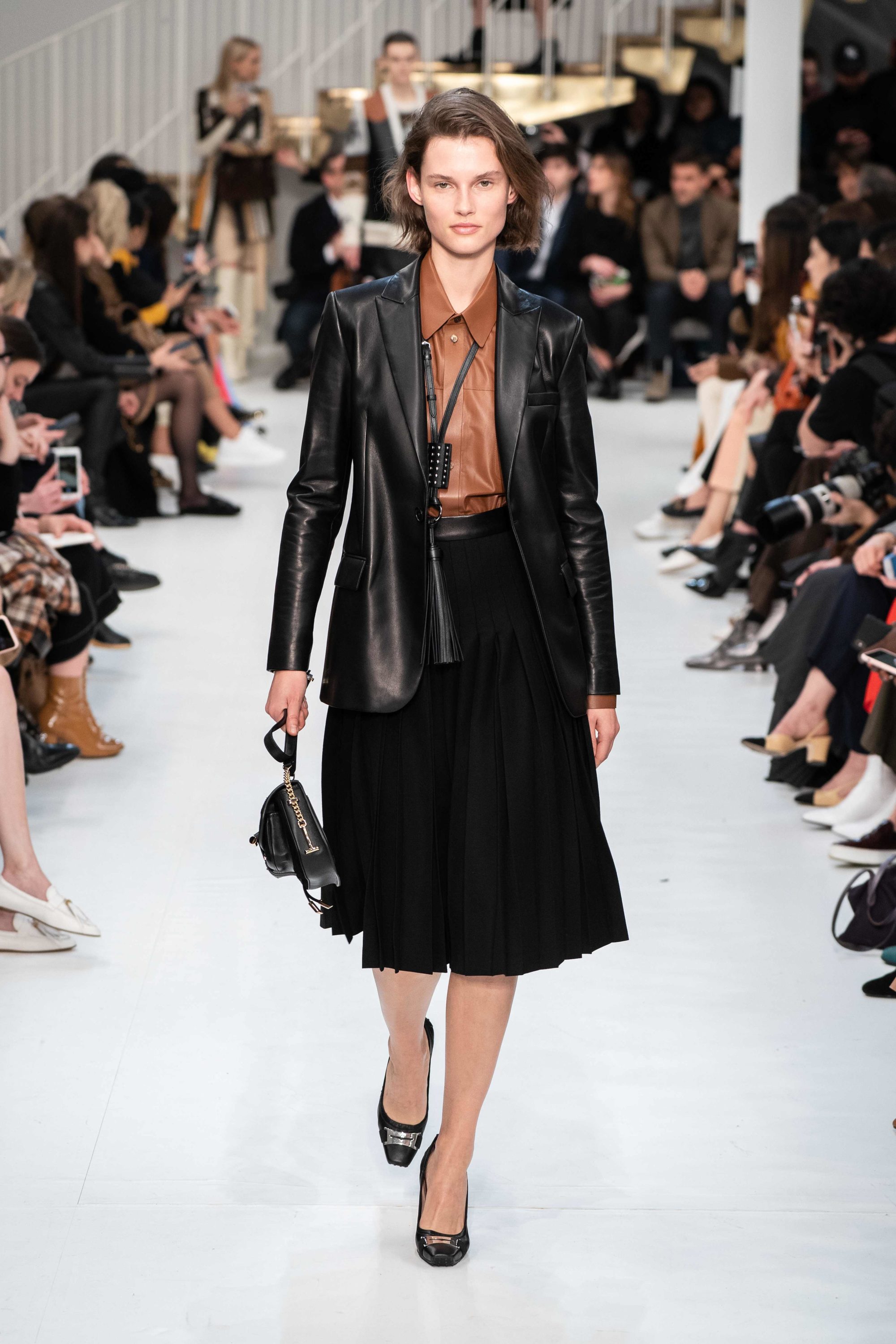 TOD's fall winter 2019 collection revolves around leather of course, a malleable material for a style that moulds around the individual.